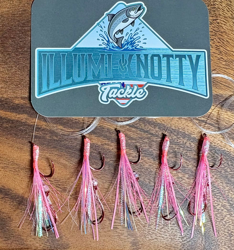 Kokanee Salmon, Trout GLOWING "Salmon Pink" Diamond Pink UV Snelled Trolling Fly